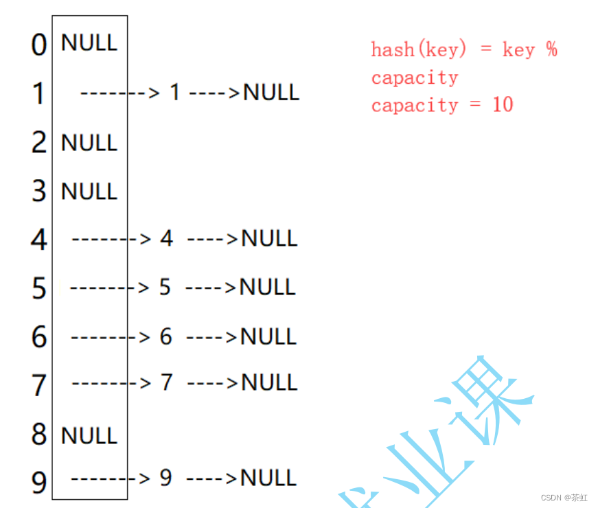 从上图可以看出,开散列中每个桶中放的都是发生哈希冲突的元素。