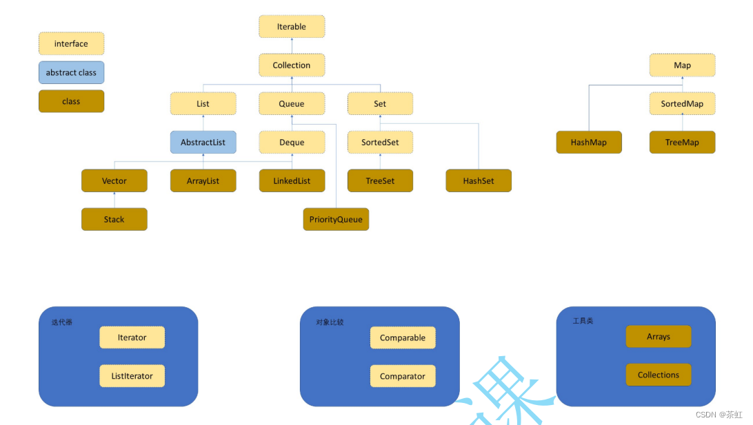 Set 与 Map 主要的不同有两点: Set 是继承自 Collection 的接口类, Set 中只存储了 Key 。