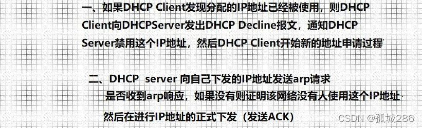 - DHCP Client接收到DHCP ACK报文后,检查DHCP Server分配的IP地址是否能够使用。如果可以使用,则DHCP Client成功获得IP地址并根据IP地址使用租期自动启动续延过程;如果DHCP Client发现分配的IP地址已经被使用,则DHCP Client向DHCPServer发出DHCP Decline报文,通知DHCP Server禁用这个IP地址,然后DHCP Client开始新的地址申请过程。