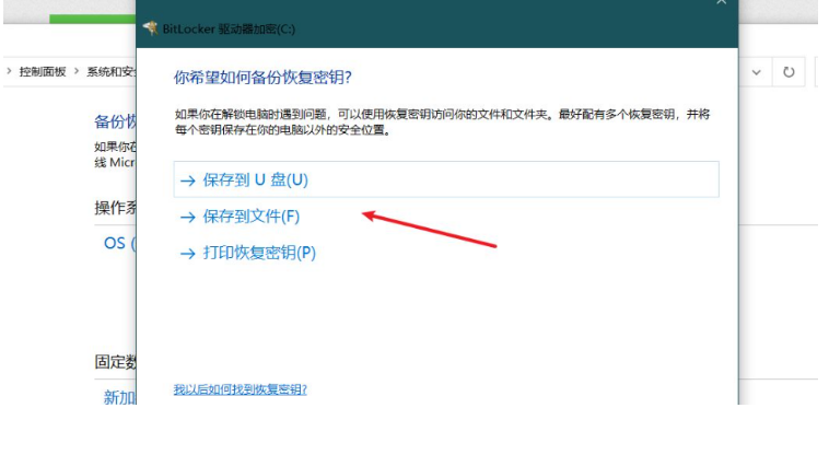 4.选择备份恢复密码存放的位置,进行备份,即可看到获取到密钥。