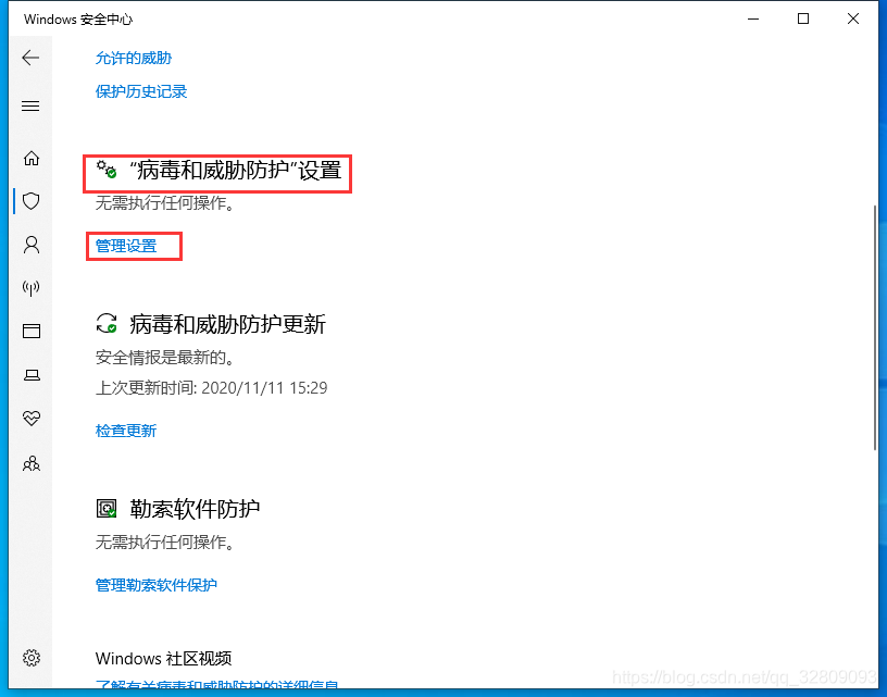 2.2 “病毒和威胁防护”设置 ——> 管理设置