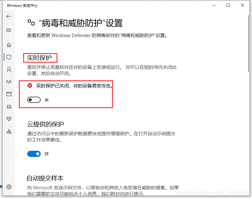 2.3 “病毒和威胁防护”设置 ——> 实时保护 ——> 关闭 实时保护