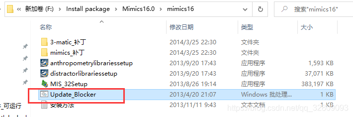 12、打开解压文件夹 F:\Install package\Mimics16.0\mimics16\ ,右键 Update_blocker.bat ——> 选择以管理员运行
