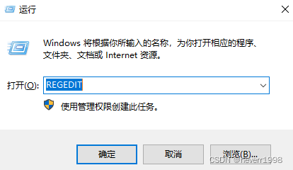 2、在运行窗口中输入REGEDIT,进入注册表编辑器