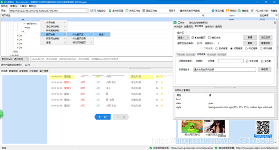 - 创建翻页定位编号,在浏览器中点击上一月,网页会自动定位该文本的结点,右击结点选择“翻页映射”,“作为翻页区”,“线索一”: