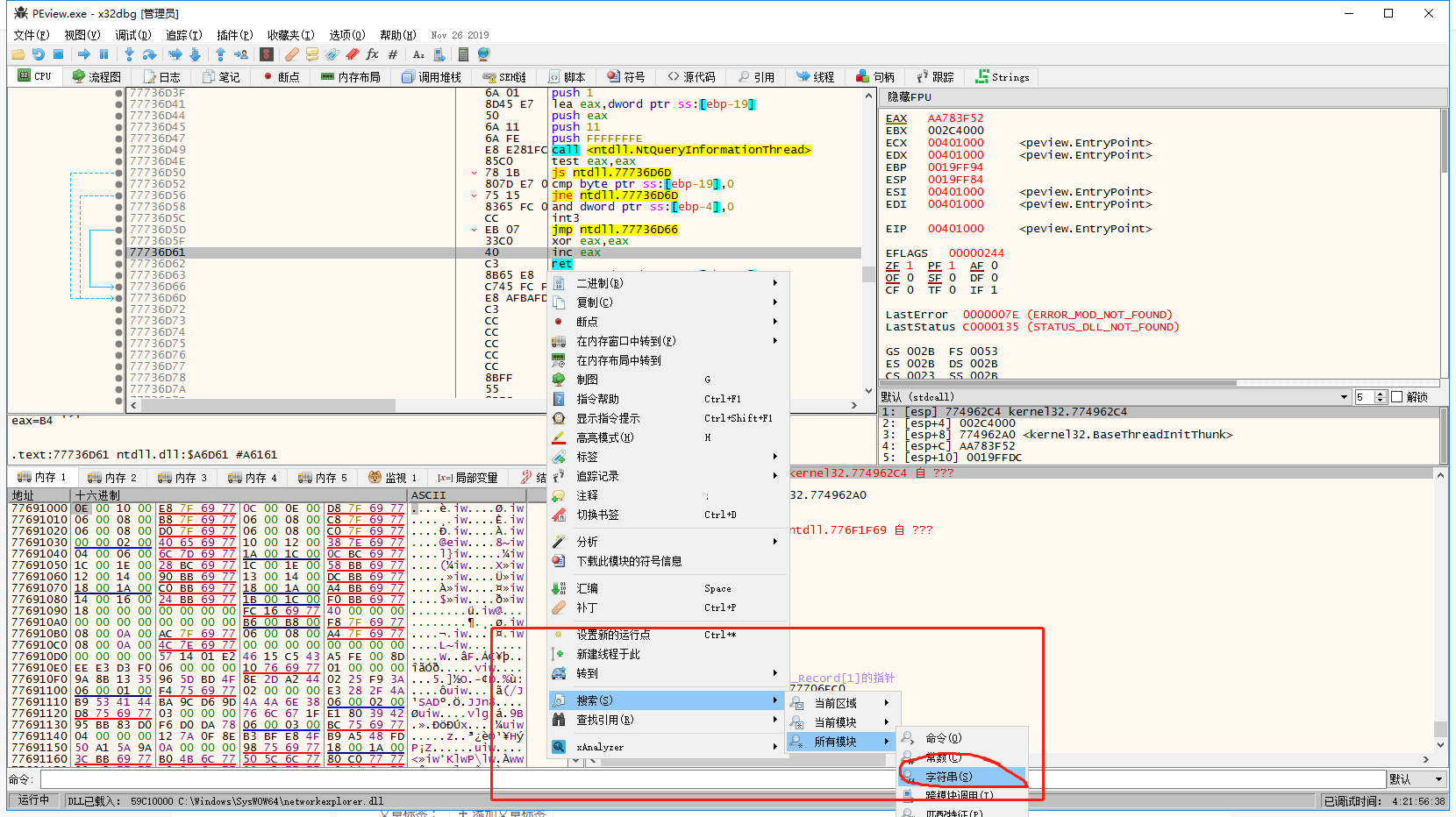 要访问一个模块的入口点,你可以写[module]:entry,[module]:oep或[module]:ep。请注意,当有名称为的导出时entry,oep否则ep将返回这些地址