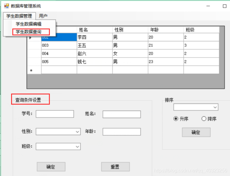 学生数据查询界面: