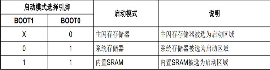 在STM32F1XX中可以通过BOOT[1:0] 引脚选择三种不同的启动模式。