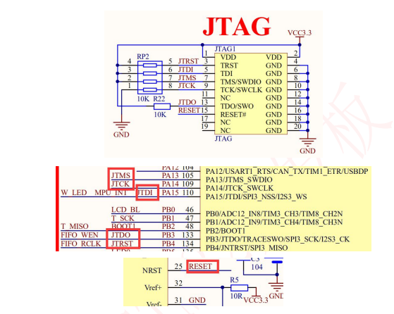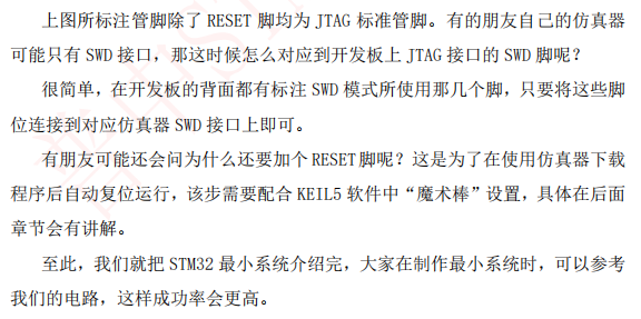 JTAG模式管脚占用5个,而SWD模式管脚只占用2个,JTAG模式管脚内已经包含了SWD模式的2个管脚,所以我们开发板上使用的是标准的2*10Pin的JTA接口。