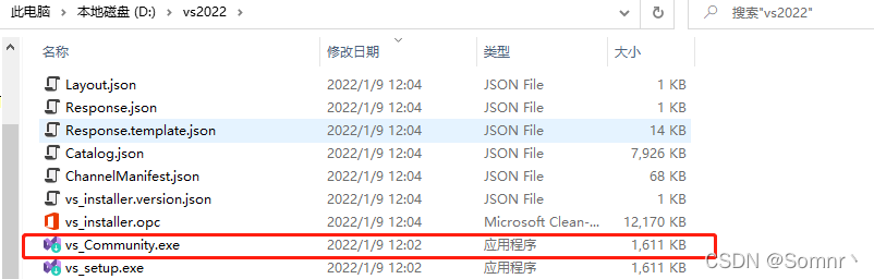 在D盘创建vs2022文件夹目录,拷贝下载器至该目录下