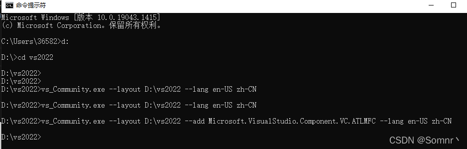vs_Community.exe --layout D:\vs2022 --add Microsoft.VisualStudio.Component.VC.ATLMFC --lang en-US zh-CN