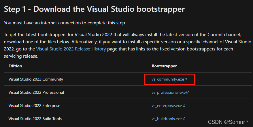 首先进入官方网站下载VS2022下载器: