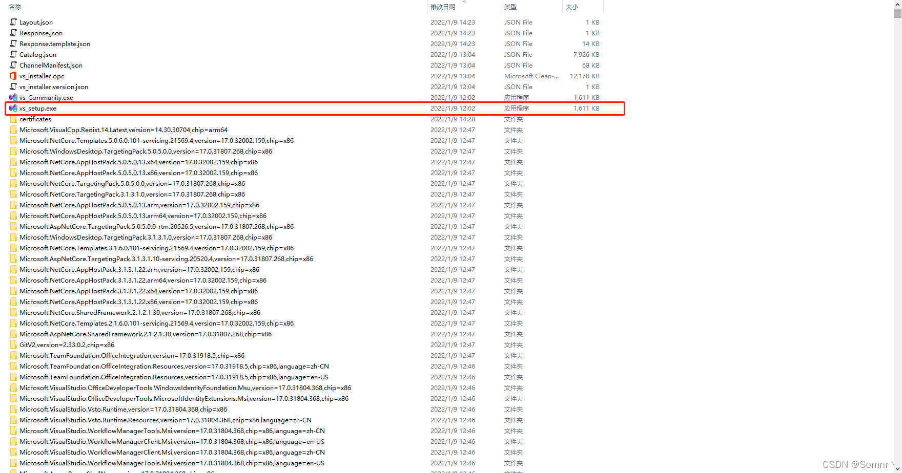 下载完毕后,该目录下的所有文件即为离线安装包,后续可以拷贝至未联网的电脑上,点击vs_setup.exe进行安装。