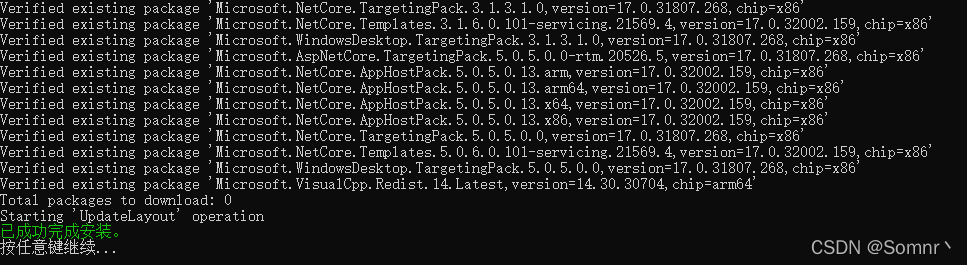 --includeRecommended:安装相关工作负载的推荐组件;或者 --includeOptional 将会下载选定的工作负载中可选的组件(后者会导致下载的离线包非常大)
