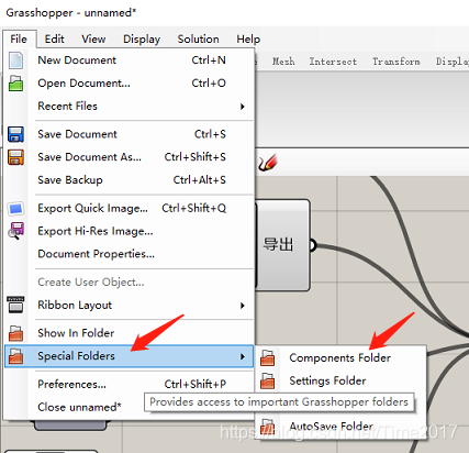 点击下图后,显示一个Gha所在文件夹,将"TanGo for Grasshopper.gha"文件拷贝到此文件夹即可。