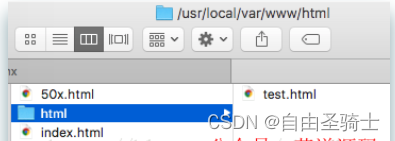 1、 首先在文档根目录Docroot(/usr/local/var/www)下创建html目录, 然后在html中放一个test.html;
