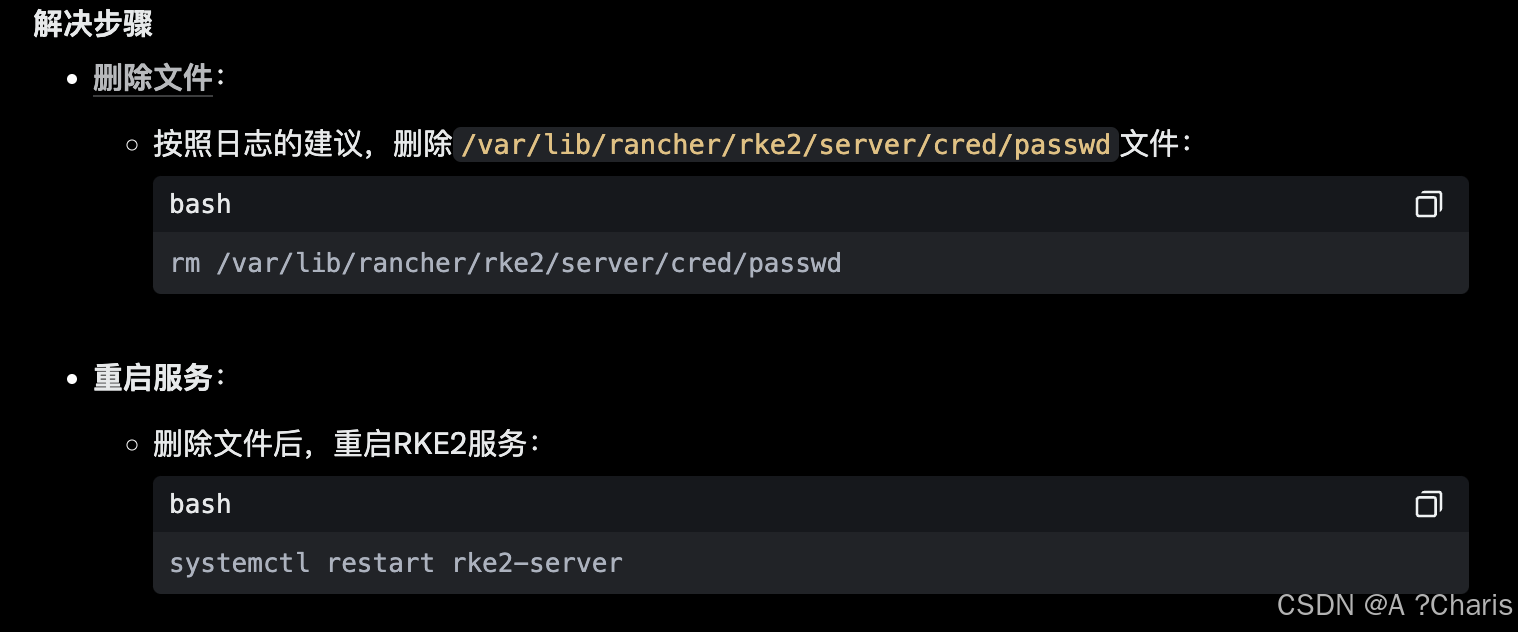 那么请备份/etc/rancher/rke2/*下的所有文件以及/var/lib/rancher/rke2/server/token