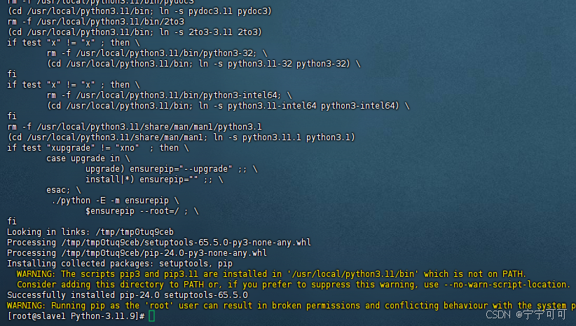 为了能够在系统中方便地使用新安装的 Python 3.11.9,需要创建软链接。将 Python 可执行文件和 pip 工具的软链接添加到系统的 PATH 中: