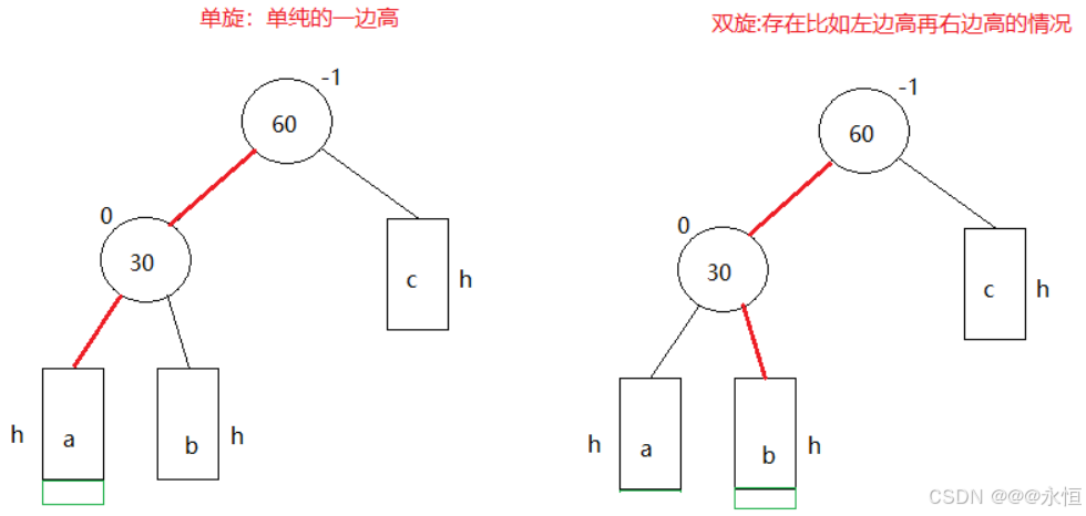 1.如果h > 0,c插入,c的高度会变为h,引发旋转;