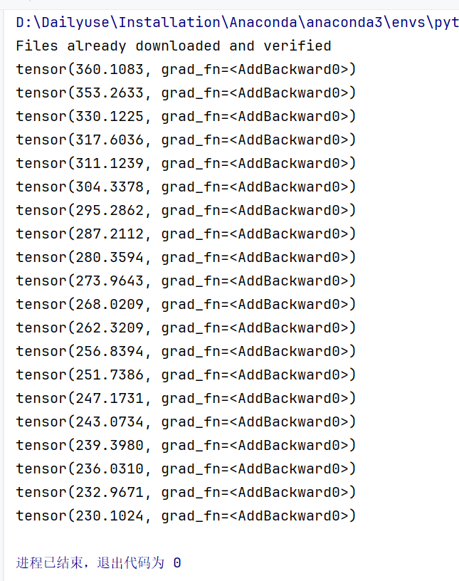 optim.step() # 调用优化器,对模型中的参数进行调优