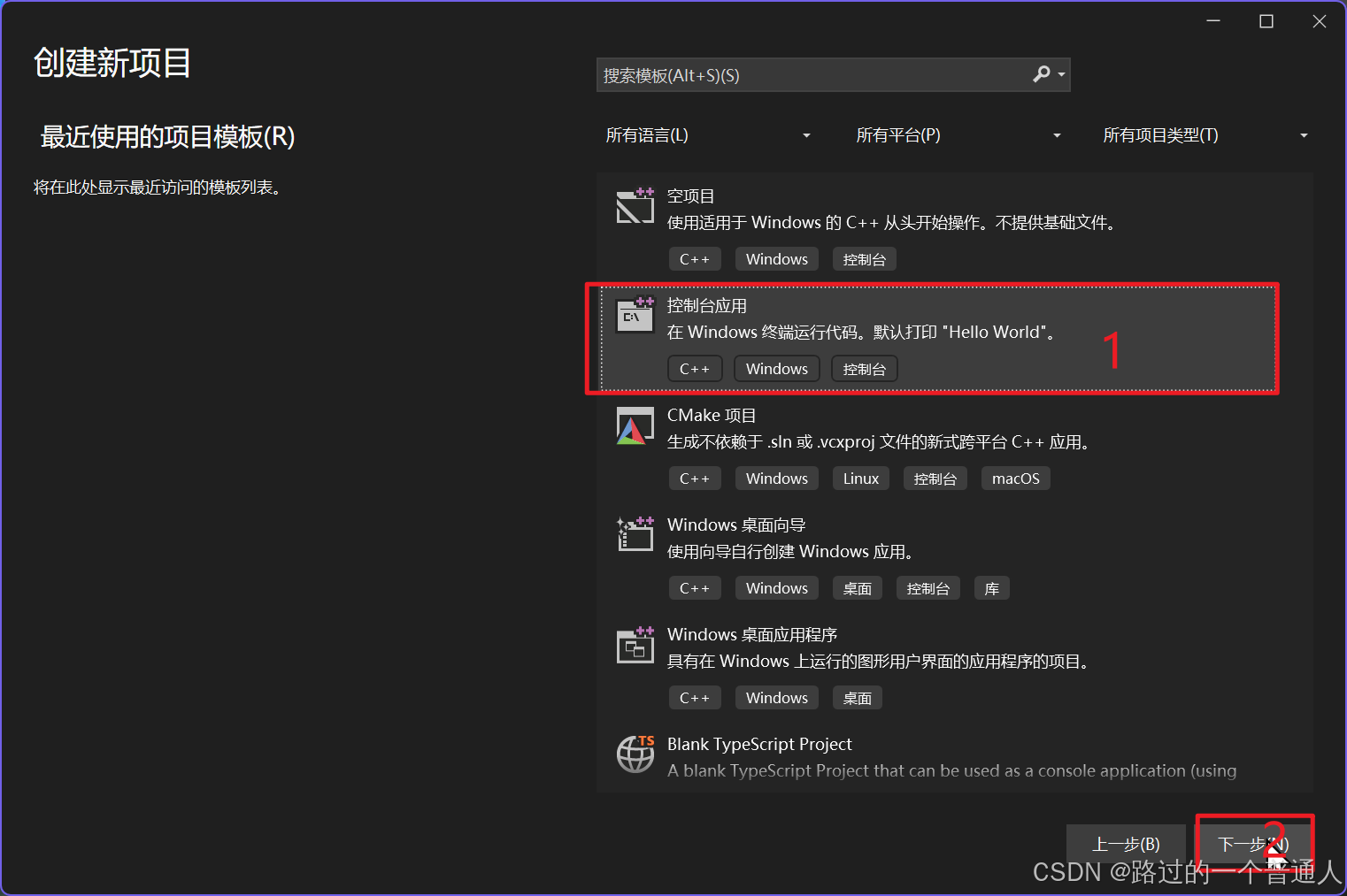 - 点击控制台应用后,点击下一步。
