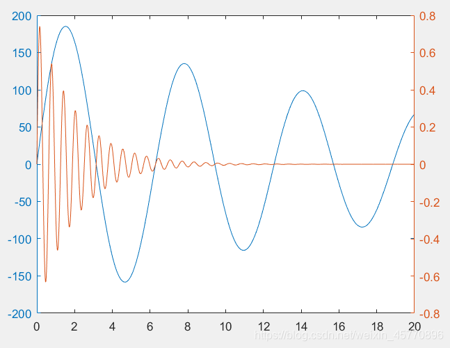 [hAx,hLine1,hLine2] = plotyy(x,y1,x,y2);