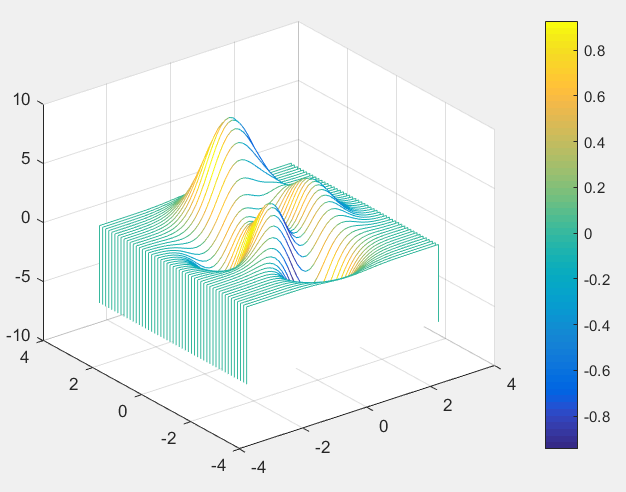 创建瀑布图,这是一种沿 y 维度有部分帷幕的网格图。这会产生一种“瀑布”效果。
