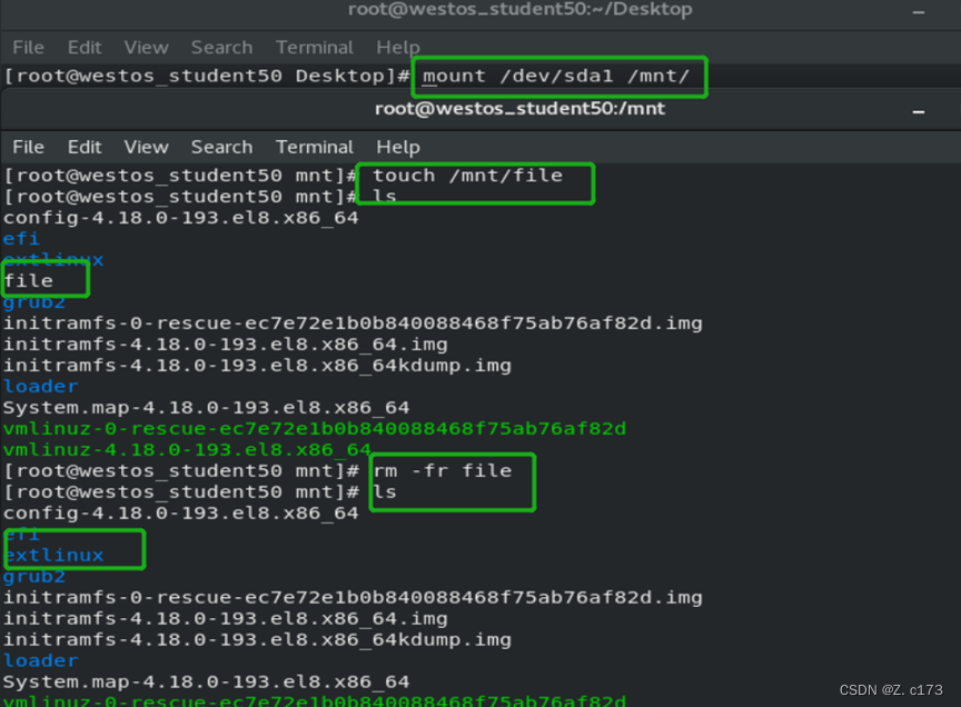 mount /dev/sdb1 /mnt/westos mount命令挂在为临时挂在,如果需要永久挂在需要编写/etc/fstab
