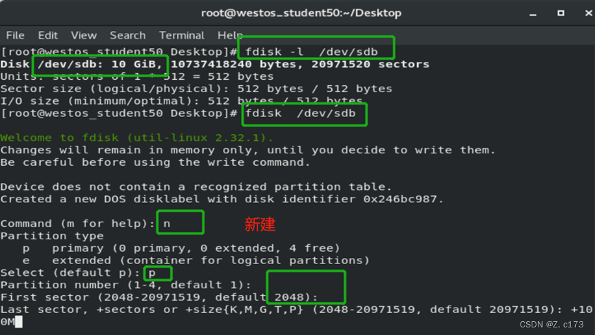 在RHEL8中可以直接使用fdisk /dev/sdb