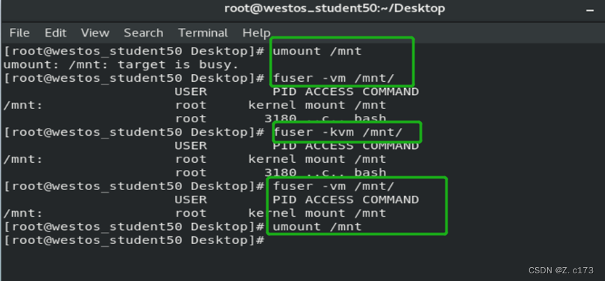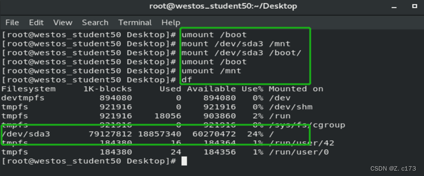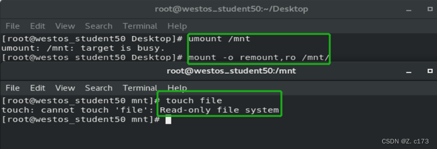 mount -o remount,ro /westos 转换挂载参数由读写变为只读