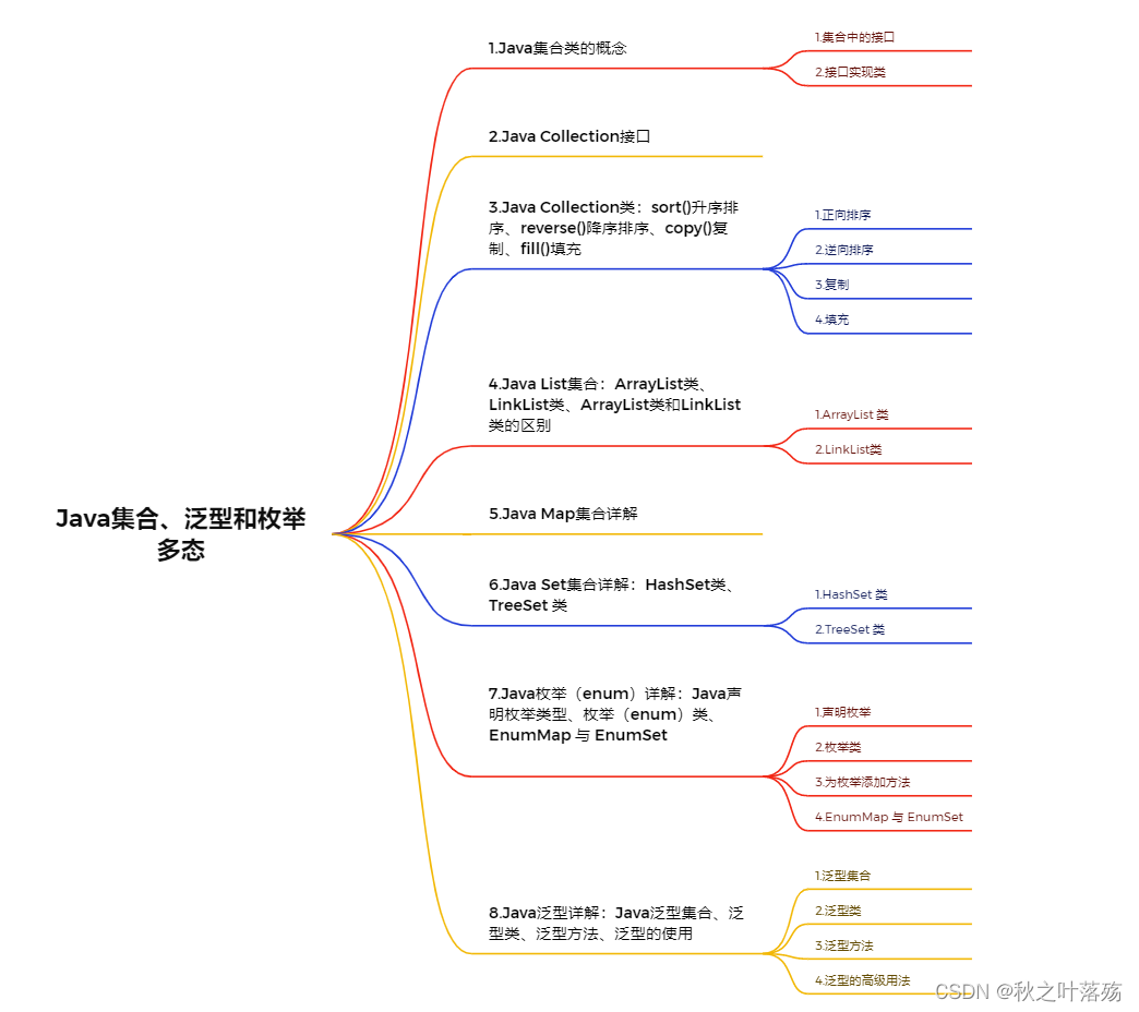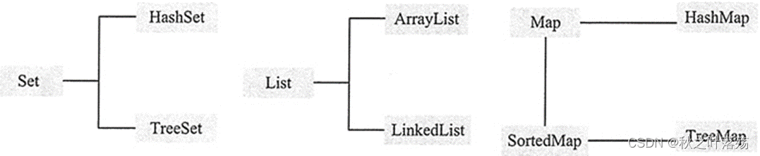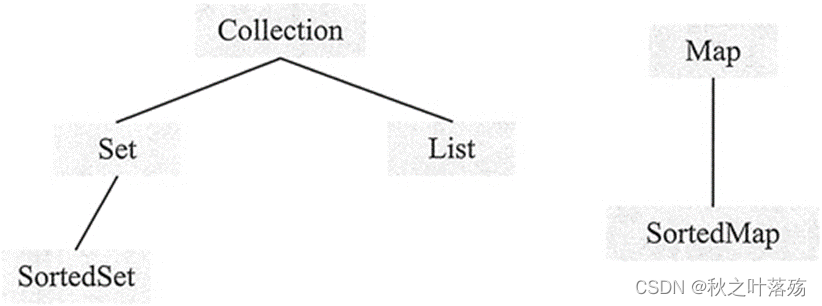 - Map 接口:包含键值对,Map 不能包含重复的键。SortedMap 是一个按升序排列的 Map 集合。