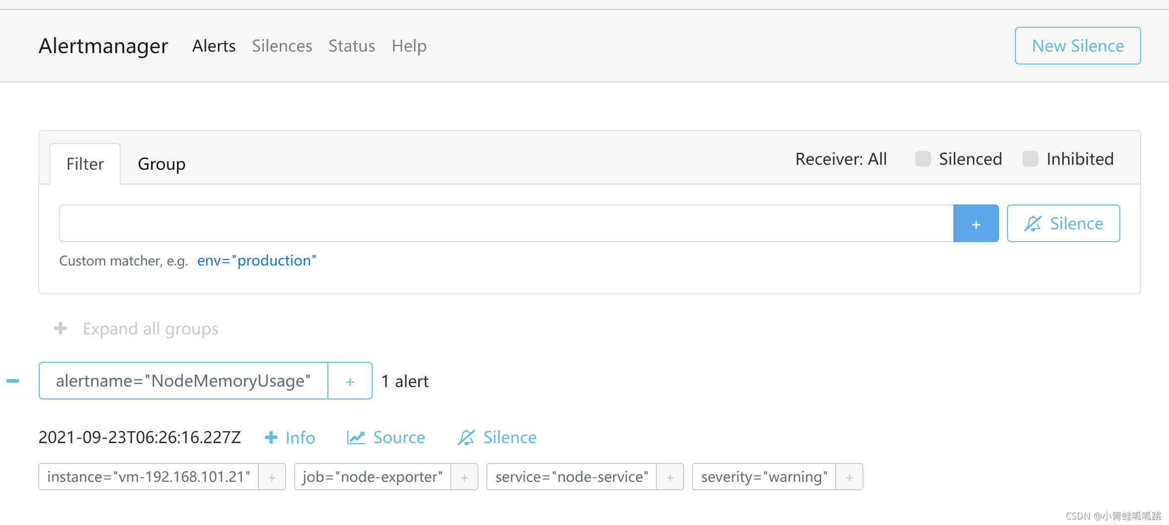 在Alertmanager的Web界面中配置沉默。