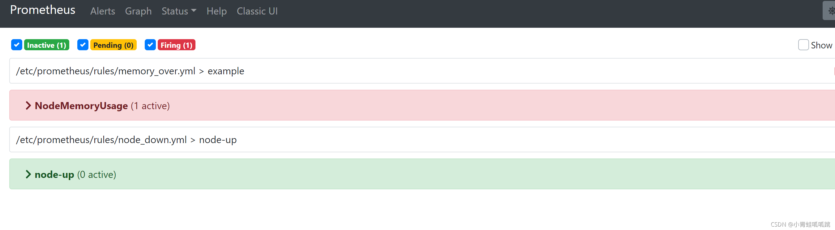 1. pending:警报被激活,但是低于配置的持续时间。这里的持续时间即rule里的FOR字段设置的时间。改状态下不发送报警。