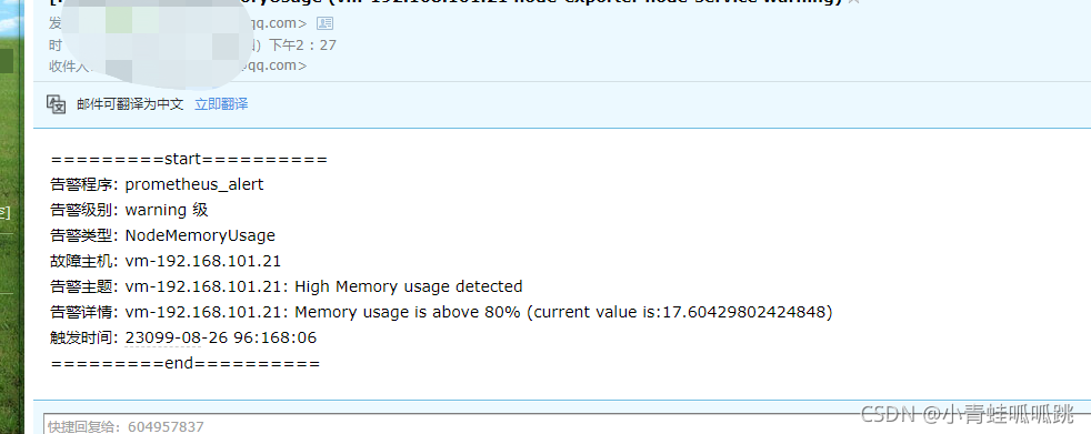 编辑配置文件,配置一下使用 Email 方式通知报警信息,这里以 QQ 邮箱为例,