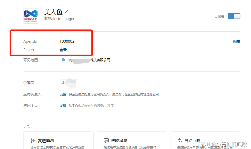 记住AgentId 和 Secret