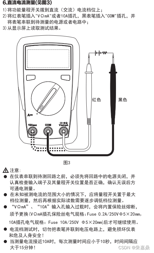 通过说明书,我怀疑是不是保险丝管烧坏了,但我之前换了其他换用表也不行啊。怀着试试的态度拆开万用表,测了保险丝管,发现200mA保险丝管不通(保险丝管测量好坏可以百度,很简单的),当时周围没有这个规格的保险丝管,就找了个最接近的2A的换上,发现mA档电流就可以测了。这种临时更换测试还行,一定要及时购买相应规格的保险丝管换上,不然哪次不小心万用表可能就报废了。