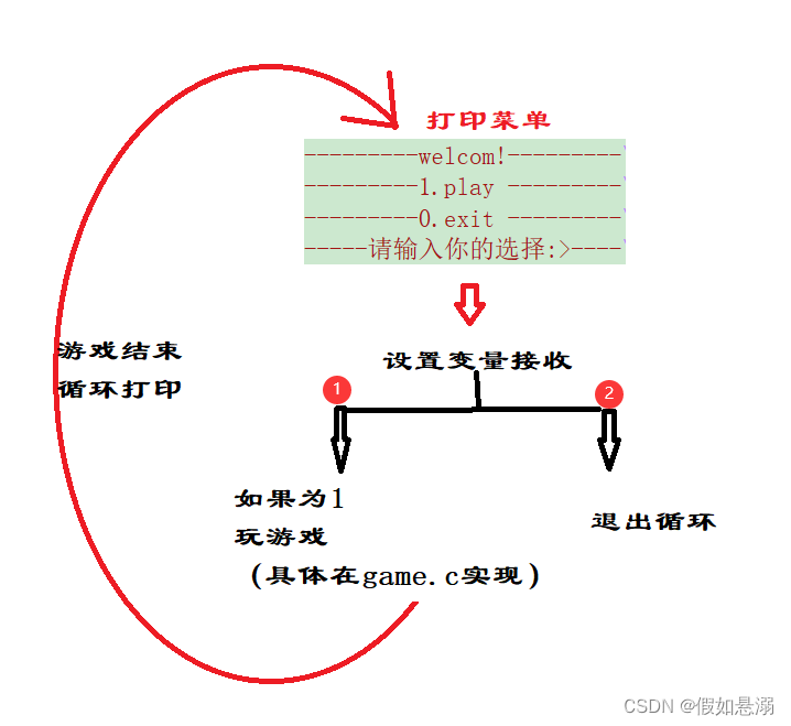 其中打印菜单和玩游戏封装为两个函数menu()和game(),在game.h声明,在game.c实现。