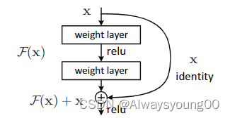 但是其实深的网络不应该比浅的网络变得更差,于是本文就提出了一个Residual的思想。如下图,原来的输出X,通过一层网络,经过Relu函数,再经过一层网络变成F(X), 而Residual即残差的思想就是将X再加到F(X)上,变成新的输出 F(X)+X .