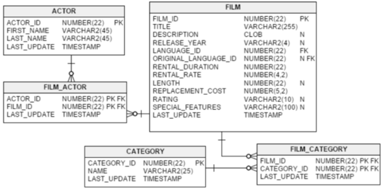 给出一个像Sakila数据库的模式: