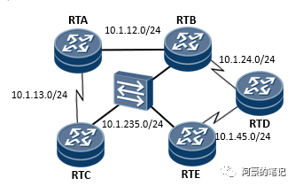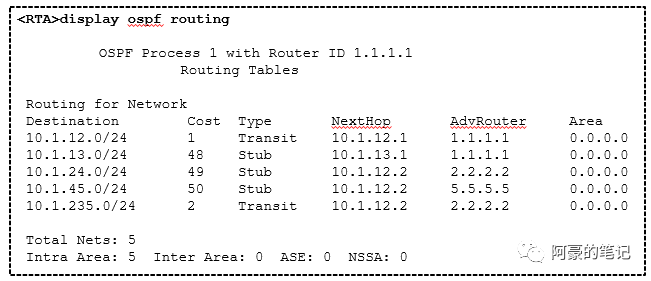 经历上述两个阶段的计算,RTA生成的OSPF路由如下图所示。