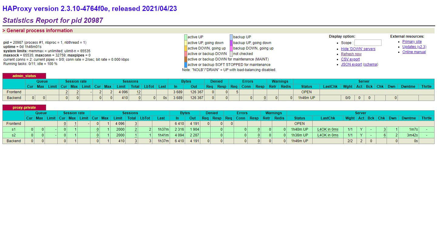 stats uri:设置 HAProxy 监控统计页面的URL 路径,可随意指定。例如、指定“stats uri /haproxy-status”,就可以过 http://IP:9188/haproxy-status 查看。