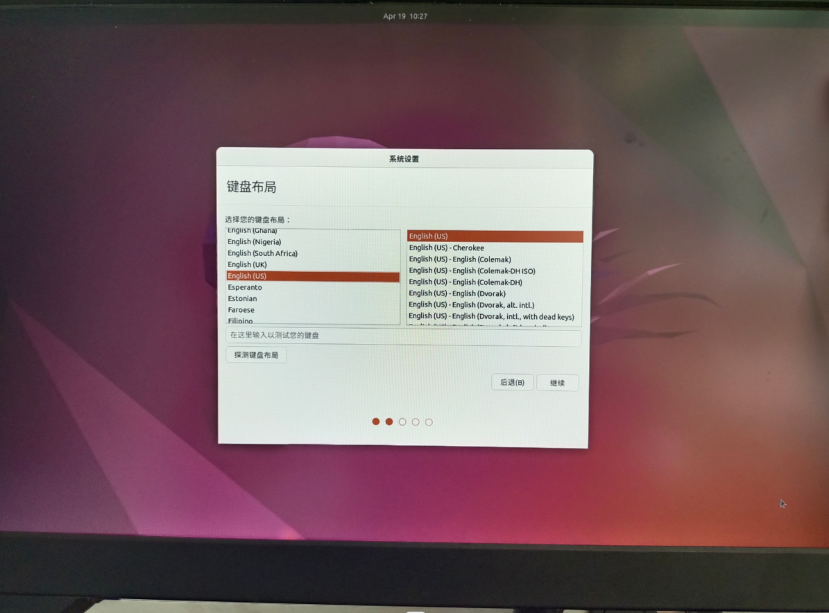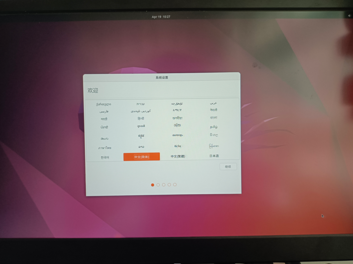如果能正常启动,则会在显示屏上将会显示安装向导: