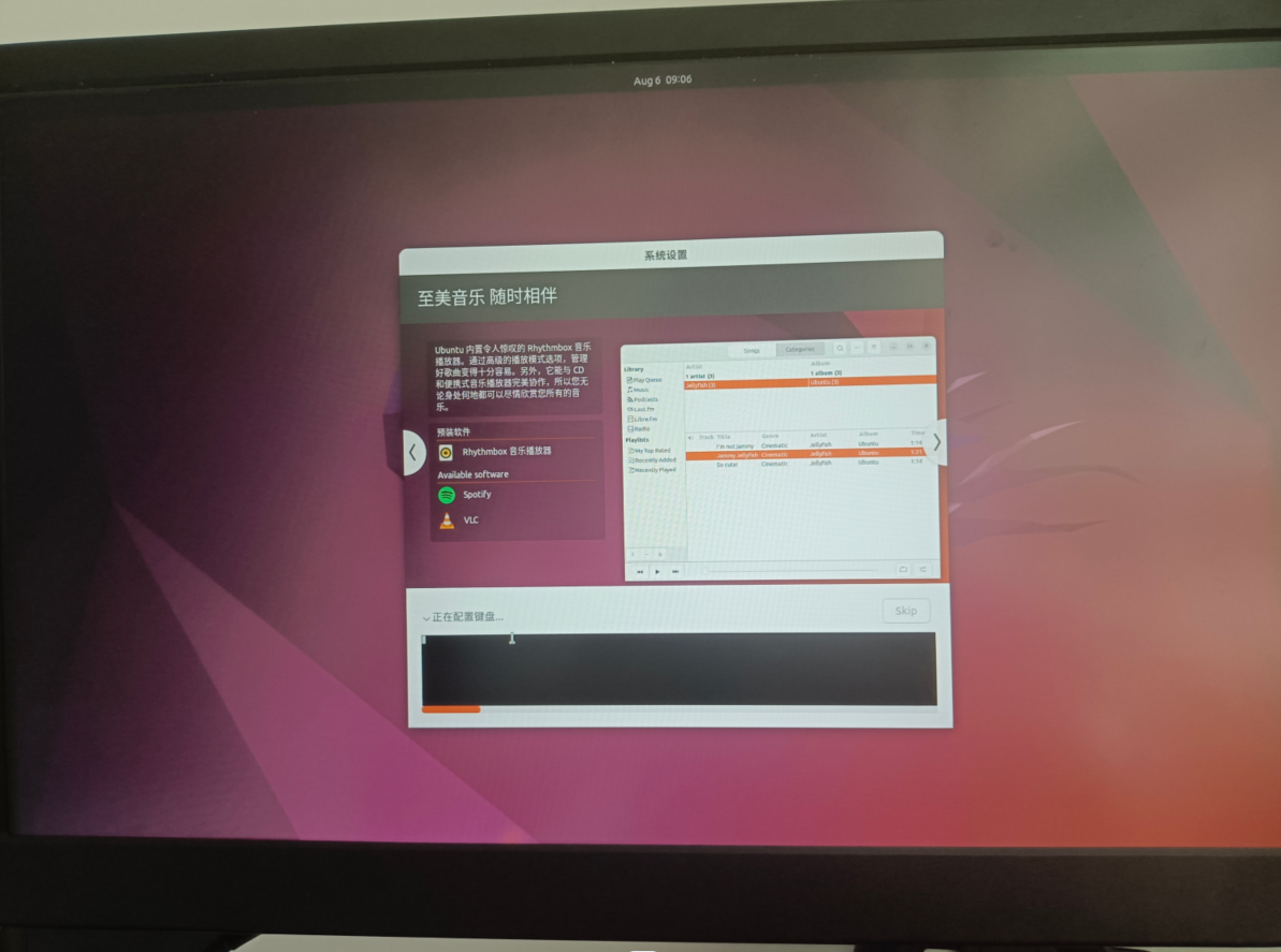 以上几个操作与常规ubuntu安装一样,没什么大的区别。经过以上几个配置操作后,ubuntu会自动进入安装中: