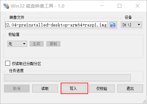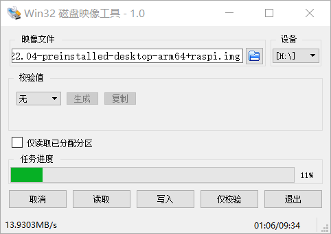 将准备好的MicroSD卡插入读卡器后接入电脑,然后打开Win32DiskImager,如下图所示: