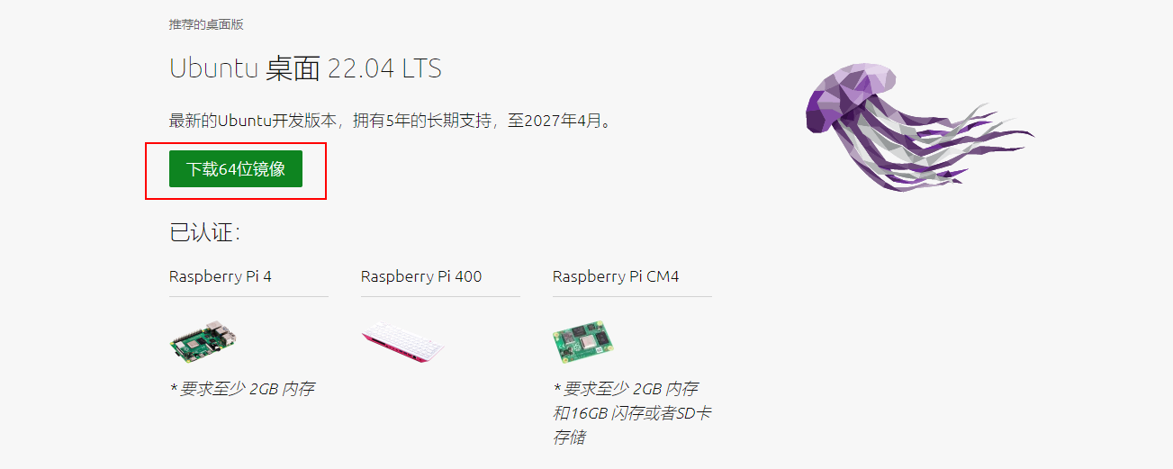 从以下链接地址:https://cn.ubuntu.com/download/raspberry-pi