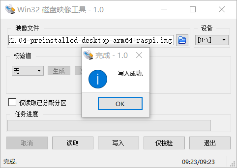 耐心等待其写入完成,完成后将弹出以下对话框: