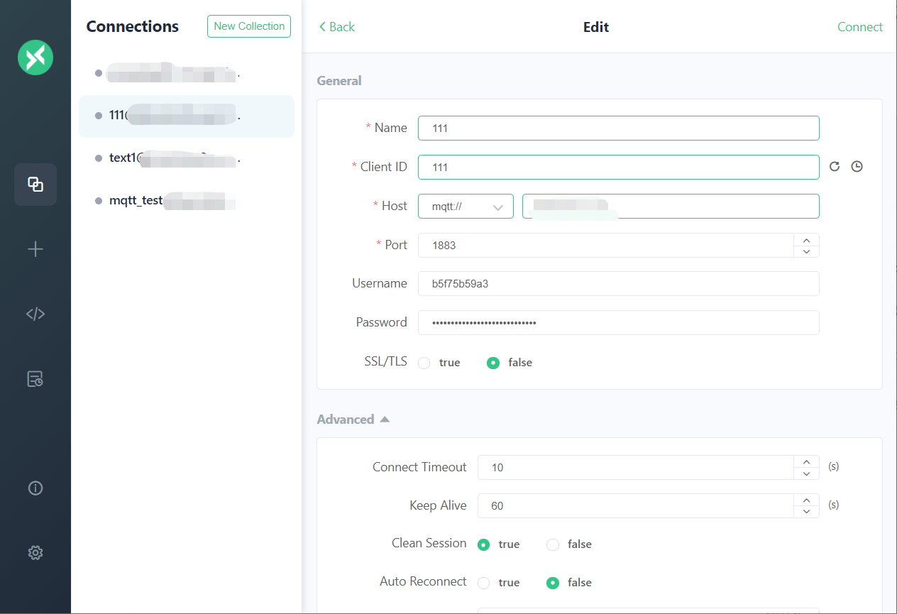 8.设备模拟登录,方式一:MQTTX登录;方式二:ip:18083登录,用户名:admin,密码:public