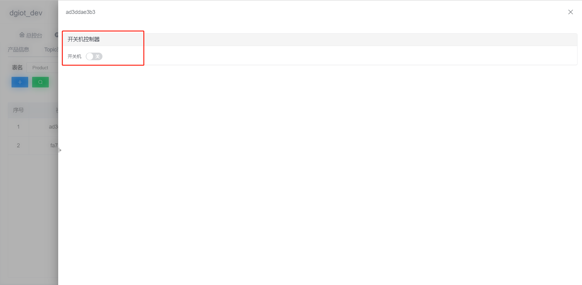 5.在产品详情的可视化中找到刚刚创建的低代码,点击预览,点击一下开关机添加平台key,如下图。