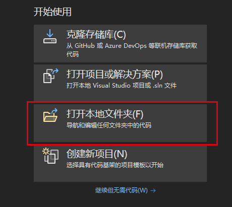 2.打开VS2022,选择"打开本地文件夹",并选择"learn_osg_01"目录。