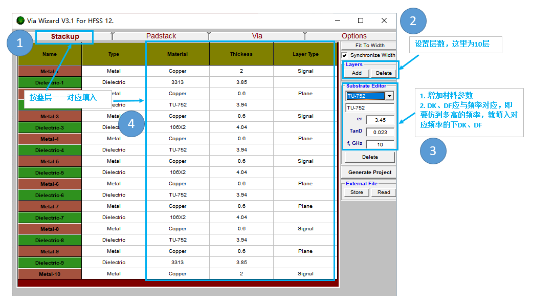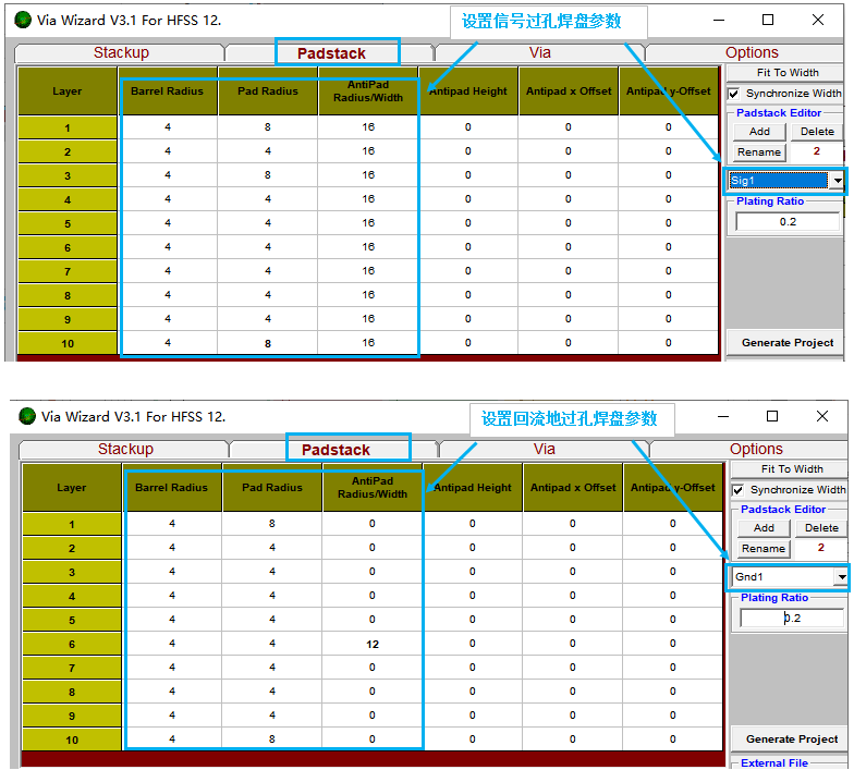 1. 过孔向导工具中的参数一定要正确,其直接影响后面的仿真结果